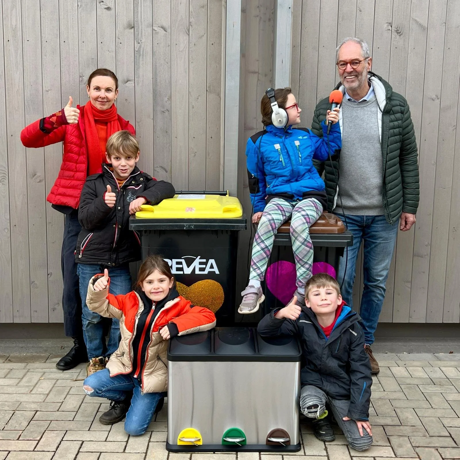 “Der Brief war so nett, da konnten wir gar nicht nein sagen“, verriet Werner Ahrens, der Vorsitzende der Bürgerstiftung, bei seinem Besuch im Morgenmuffel Radio im März 2025. Die Kinder hatten ihn in ihr preisgekröntes Schulradio eingeladen, um sich persönlich für die finanzielle Unterstützung zur Anschaffung von Sortierbehältern für die Klassen zu bedanken und gemeinsam den offiziellen Startschuss für die Mülltrennung an der Schule zu geben.